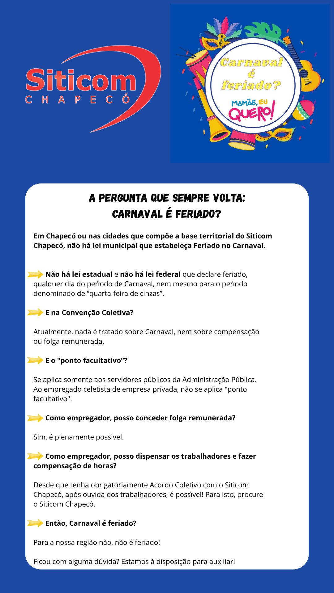 O que tenho a dizer sobre o sindicato é que pra mim foi muito bom desde a época que me associei com eles. Sempre que eu pude contar com eles, eu não precisei nem ir lá pra marcar uma consulta. Sou muito grato ao Siticom e pretendo permanecer ali por um bom tempo. Eu sempre vou precisar, como eu sempre precisei.